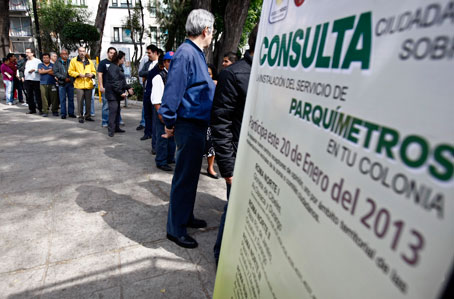 Más de 10 mil vecinos de las colonias Roma Norte y Sur, Condesa e Hipódromo Condesa participaron en la consulta ciudadana sobre la instalación de parquímetros. La imagen, en la plaza Luis Cabrera Foto Cristina Rodríguez
