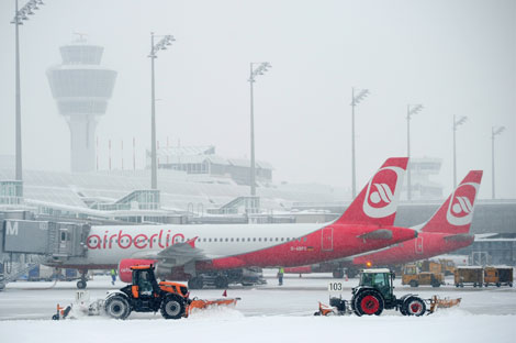 Las tormentas que se registraron el fin de semana afectaron varios aeropuertos europeos, como los parisienses de Orly y Roissy, en los cuales 40 por cientos de los vuelos fueron cancelados por segundo día consecutivo. En Alemania, la terminal de Francfort suspendió más de 200 viajes. En Gran Bretaña, el londinense Heathrow dejó en tierra 175 naves. La imagen corresponde al aeropuerto de Munich Foto Ap