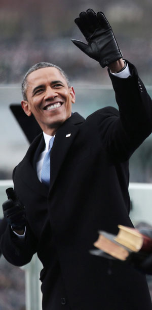 Barack Obama, el primer presidente negro en la historia de Estados Unidos, renovó su cargo ante el pueblo, como manda la tradición, un día después de haber sido investido oficialmente. El mandatario juró ante una biblia que pertenecía a Abraham Lincoln y otra que era del reverendo Martin Luther King. Casi un millón de simpatizantes acudieron a la ceremonia al pie del Capitolio Foto Ap