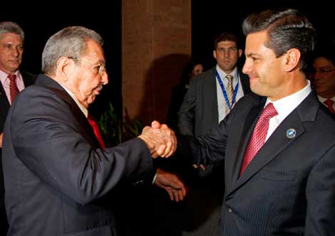 Los presidentes de Cuba, Raúl Castro, y de México, Enrique Peña Nieto, durante el encuentro en la capital chilena Foto Ap