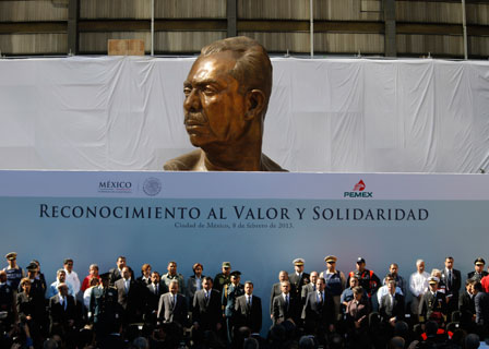 El presidente Enrique Peña Nieto, acompañado de secretarios de Estado y de los mandatarios del Distrito Federal y del estado de México, insistió en que se llegará al fondo en las investigaciones por la explosión en el edificio B-2 de Pemex Foto Carlos Ramos