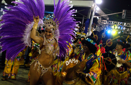 Centenas de miles salieron a las calles de Río para celebrar el carnaval al ritmo del bloco y tratar de conseguir el récord Guinness de asistencia. En Veracruz coronaron a Carmelina II como reina. La imagen, en la escuela de samba Tuiuti de Brasil Foto Reuters