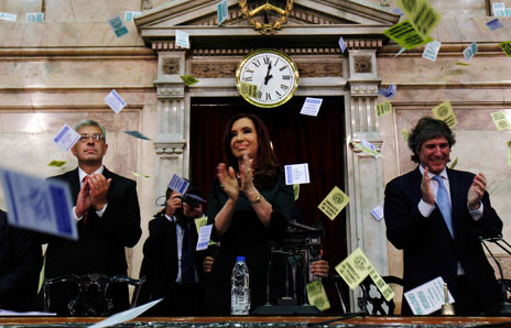 Una corte de apelaciones de Estados Unidos ordenó a Argentina resolver la disputa con acreedores que reclaman mil 300 millones de dólares. En respuesta, la presidenta Cristina Fernández de Kirchner advirtió que si cumpliera con ese fallo, los demás demandantes con los que ya llegó a un acuerdo reclamarían su dinero de inmediato y la deuda sería impagable. La mandataria anunció además que presentará un proyecto de ley para democratizar la justicia en su país Foto Reuters