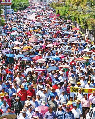 Miles de maestros iniciaron ayer en Oaxaca, Michoacán, Chiapas, Guerrero y Durango un paro laboral de 48 horas convocado por la Coordinadora Nacional de Trabajadores de la Educación para protestar por la promulgación de la reforma educativa. La movilización dejó sin clases a más de dos millones de alumnos de educación básica. La imagen, en Tuxtla Gutiérrez Foto Elio Henríquez