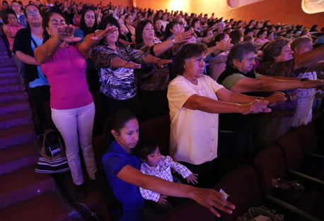Como parte de los festejos realizados ayer en la ciudad de México para conmemorar el Día Internacional de la Mujer, un grupo se dio cita en el Centro Cultural Fausto Vega, de la delegación Iztapalapa, para realizar ejercicios de meditación Foto Francisco Olvera