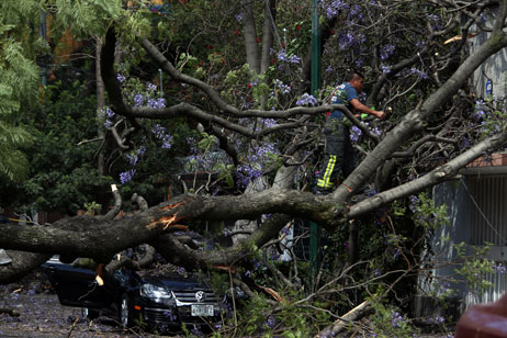 Las rachas de viento, que alcanzaron hasta 56 kilómetros por hora en algunas zonas de la ciudad de México, derribaron 180 árboles, nueve postes de energía eléctrica y seis anuncios espectaculares, lo que afectó vialidades principales y dañó vehículos estacionados. Las delegaciones más afectadas fueron Coyoacán, Iztapalapa y Tláhuac Foto Alfredo Domínguez