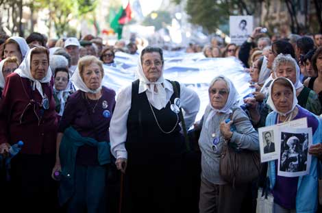 Madres y Abuelas de la Plaza de Mayo participaron en la conmemoración del Día de la Memoria, la Verdad y la Justicia, en Buenos Aires, durante los actos para rememorar el golpe de Estado que instaló la dictadura más cruenta en la historia de ese país, el 24 de marzo de 1976. En San Salvador de Jujuy, alrededor de 100 mil personas recorrieron la ciudad con cánticos de nunca más y fin de la impunidad, a la que vez que celebraron los juicios contra Jorge Rafael Videla y subalternos por crímenes de lesa humanidad Foto Xinhua
