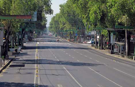 La mayoría de las arterias principales del Distrito Federal (el eje Lázaro Cárdenas, en la imagen) lucieron ayer así por el inicio de la Semana Santa. El éxodo de capitalinos se concentró en las autopistas hacia Querétaro, Cuernavaca, Pachuca y Puebla. Las terminales de autobuses, así como el Aeropuerto Internacional de la Ciudad de México, registraron gran actividad, sobre todo hacia destinos de playa Foto Víctor Camacho