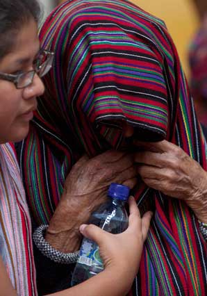 Una anciana de la etnia maya ixil compareció ayer en el juicio contra el ex presidente golpista Efraín Ríos Montt y su jefe de inteligencia militar José Rodríguez, por genocidio y delitos de lesa humanidad. La mujer fue víctima de abusos sexuales por parte de militares, durante el gobierno de facto entre 1982 y 1983 Foto Ap