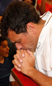El candidato opositor, Henrique Capriles, ayer durante una ceremonia religiosa en la isla de Margarita, en el noreste del país Foto Xinhua