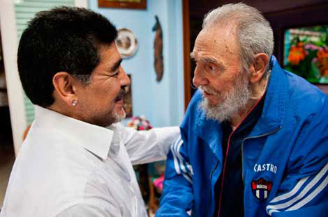animadoencuentro con su amigo, el ex futbolista argentino Diego Armando Maradona, reportó el diario oficial Granma. Fidel Castro, de 86 años y retirado del poder desde julio de 2006 por una grave crisis de salud, sostuvo