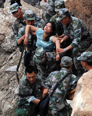 El terremoto sacudió el sureste del país –la misma zona devastada en 2008 por otro temblor– y alcanzó siete grados en la escala de Richter, de acuerdo con el servicio sismológico local. Más de 6 mil personas resultaron heridas y se colapsaron numerosos edificios y viviendas. En la imagen, rescate de una sobreviviente en la provincia de Sichuán Foto Ap /Xinhua