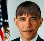 En cena con corresponsales de la Casa Blanca, Barack Obama mostró su imagen digitalizada con el fleco de su esposa Michelle, para mofarse de sí mismo y de sus críticos Foto Reuters