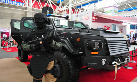 En la reunión nacional de alcaldes fue instalada una exposición dedicada a los municipios en la que se ofrecieron equipos y armamento para la seguridad de los ediles. Hubo desde vehículos de asalto hasta fusiles de combate. Los precios de algunos rifl es llegaban a 6 mil 500 dólares Foto Carlos García