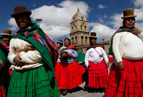 Miles de indígenas, campesinos, cocaleros, mineros de cooperativas y empleados públicos se manifestaron en La Paz y Cochabamba en respaldo al presidente boliviano, quien denunció intenciones golpistas en las protestas de la Central Obrera Boliviana. La organización exige que las jubilaciones sean otorgadas al ciento por ciento del salario de los dos últimos años. El Ejecutivo sólo accedió a 70 por ciento Foto Ap