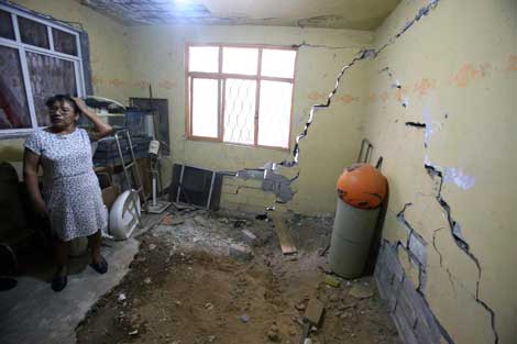 Agustina Ramírez señaló que en 2005 comenzaron los hundimientos y cuarteduras en su vivienda en Iztapalapa. Agregó que autoridades de protección civil rellenaron las grietas en 2009, pero éstas volvieron a aparecer Foto Jesús Villaseca