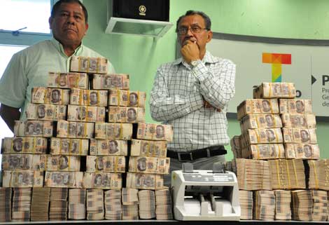 Autoridades de Tabasco mostraron los fajos de dinero que fueron hallados en una vivienda del municipio de Nacajuca. Señalaron que el propietario del inmueble recibía instrucciones directas de José Manuel Saiz Pineda, tesorero en el gobierno de Andrés Granier Melo Foto Notimex