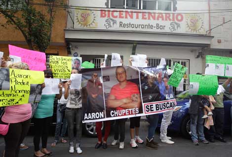 Familiares de los 11 jóvenes reportados como desaparecidos realizaron un plantón frente al afterhours conocido como Heaven, pero cuya razón social es Restaurante Bicentenario. El negocio, ubicado en la calle de Lancaster, en la Zona Rosa, ya había sido clausurado en septiembre de 2011 Foto Yazmín Ortega