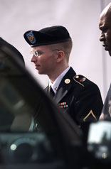 El soldado Bradley Manning abandona el tribunal militar en el Fuerte Meade, en Maryland, donde ayer comenzó su juicio por filtrar cientos de miles de documentos clasificados del gobierno estadunidense Foto Afp