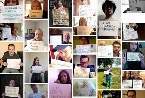 Personalidades del espectáculo y la cultura estadunidenses se unieron en un video titulado I am Bradley Manning como parte de la campaña en favor de la liberación del soldado, quien es juzgado por filtrar al sitio Wikileaks 700 mil cables confidenciales. También se invitó al público a firmar una petición para postularlo al Premio Nobel de la Paz. En la grabación aparecen el cineasta Oliver Stone, el músico Moby y la escritora Alice Walker, entre otros. La mayoría expresa lo