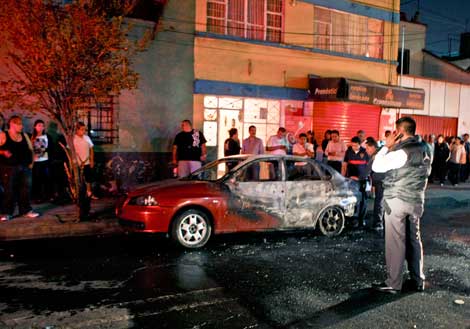 Miguel Ángel Mancera, jefe de Gobierno del Distrito Federal, informó que luego de la agresión armada en el gimnasio Body Extreme, un vehículo fue incendiado en la esquina de Hojalatería y Plomeros, colonia Morelos Foto Víctor Camacho