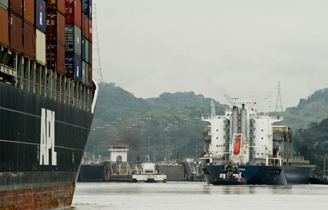 Una empresa china ofreció invertir 40 mil millones de dólares en la construcción de un gran canal interoceánico en Nicaragua. El presidente Daniel Ortega ya envió el proyecto a la Asamblea Nacional. En la imagen, cargueros se dirigen hacia el Canal de Panamá Foto Ap