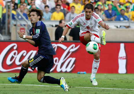 Con goles de Javier Chicharito Hernández la selección nacional de futbol se impuso 2-1 a la escuadra japonesa. Ambos equipos ya estaban eliminados de la copa que se disputa en Brasil. El Tri mostró ayer su mejor juego en ese torneo Foto Ap