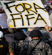 Manifestantes que exigen a la FIFA salir de Brasil se enfrentaron en Belo Horizonte a efectivos militares y de la Fuerza Nacional Foto Reuters