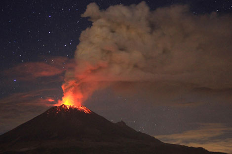 El volcán Popocatépetl mostró gran actividad desde la madrugada de ayer, con exhalaciones y expulsión de ceniza, así como material incandescente. Se reportó la caída del polvillo en ocho municipios mexiquenses y cuatro delegaciones del Distrito Federal Foto José Castañares