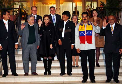Los presidentes de Ecuador, Rafael Correa; de Uruguay, José Mujica; de Argentina, Cristina Fernández; de Bolivia, Evo Morales; de Venezuela, Nicolás Maduro, y de Surinam, Desi Bouterse, participaron en la reunión extraordinaria de la Unión de Naciones Sudamericanas (Unasur). También acudieron representantes de los otros seis países del organismo Foto Ap