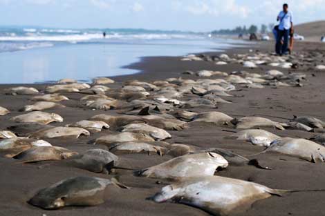 la primera versión es que las muertes fueron provocadas por pescadores, pero no es muy creíble. Turistas que paseaban por la playa se sorprendieron e indignaron al ver esparcidos los cuerpos, algunos de ellos destazados Foto Reuters
