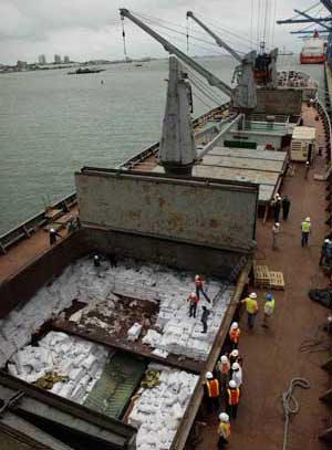 armamento defensivo obsoletopara su reparación en Corea del Norte, el cual fue retenido en el Canal de Panamá. El equipo estaba disimulado bajo toneladas de azúcar. El presidente Ricardo Martinelli dijo que continuaba la inspección y que pedirá apoyo a Estados Unidos y Gran Bretaña. Washington dio su total respaldo a la acción del país canalero Foto Ap