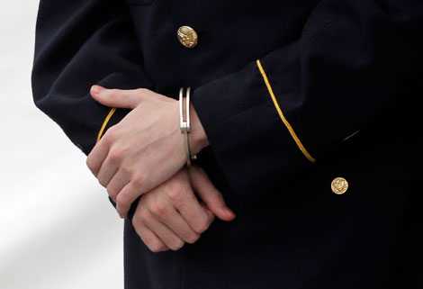 El soldado Bradley Manning fue esposado para su traslado luego de escuchar el veredicto de un consejo de guerra en el fuerte Meade. El militar fue declarado culpable de violaciones a la ley de espionaje, entre otros delitos, por la mayor filtración de información oficial realizada en Estados Unidos Foto Ap