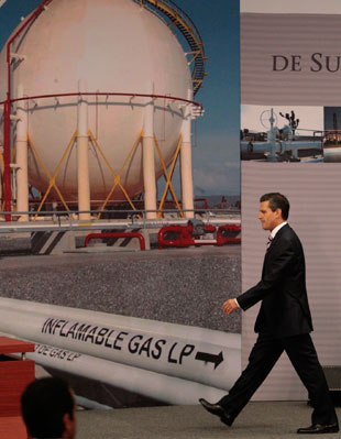 Durante la presentación en la residencia oficial de Los Pinos de la Estrategia Integral de Suministro de Gas Natural, el presidente Enrique Peña Nieto llamó a resolver la paradoja que significa tener abundancia de gas en el subsuelo y escasez en la superficie. A la ceremonia acudieron representantes de la iniciativa privada y el gabinete económico Foto José Antonio López