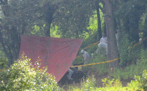 Peritos federales realizaron diligencias en el rancho La Negra, en el municipio mexiquense de Tlalmanalco, donde fue localizada una fosa clandestina. La PGR realizaba en la zona una investigación sobre una casa de seguridad donde presuntamente se almacenaban armas Foto La Jornada