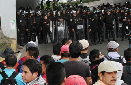 sede alternaante el cerco magisterial. Agentes federales y granaderos resguardaron el lugar Foto Víctor Camacho