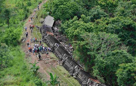 El tren de la línea Istmo de Tehuantepec, conocido como La Bestia, descarriló a la altura del ejido La Tembladera, municipio de Huimanguillo. Migrantes sobrevivientes dijeron que caminaron durante cuatro horas hasta Las Choapas, Veracruz, en busca de ayuda médica y refugiarse en albergues Foto Reuters