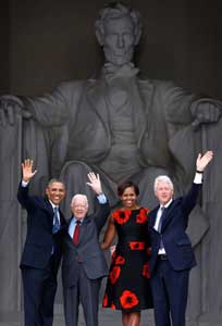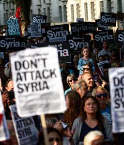 Ante el monumento a Abraham Lincoln, el presidente Barack Obama conmemoró, junto con su esposa Michelle y los ex mandatarios Jimmy Carter y Bill Clinton, la Marcha sobre Washington que encabezó hace 50 años Martin Luther King. En ese lugar, el entonces líder de los derechos civiles pronunció su histórico discurso I have a dream. En el acto, algunos participantes rechazaron una eventual ofensiva contra Siria. Igual situación ocurrió en Londres (en la imagen derecha), donde se realizó una manifestación de repudio contra la propuesta de intervención militar presentada por Gran Bretaña en la ONU Fotos Reuters