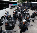 Policías federales resguardan desde ayer el Senado, donde ahora se discutirá la reforma para evaluar a docentes Foto Carlos R. Mamahua
