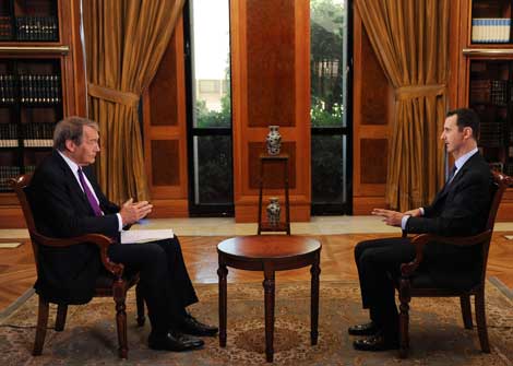 Prepárense para todo, advirtió el presidente de Siria, Bashar Assad (derecha), en entrevista concedida a la cadena CBS, tras señalar que habrá represalias contra Estados Unidos si ataca militarmente a su país. Rechazó una vez más que sus fuerzas haya utilizado armas químicas Foto Reuters