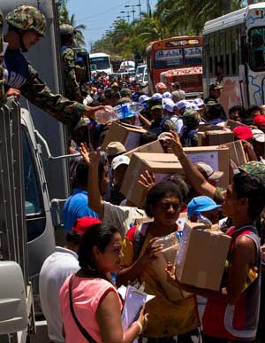 Finalmente el Bulevar de las Naciones, en la zona de Punta Diamante, pudo ser reabierto a la circulación al bajar las inundaciones causadas por Manuel. En el segundo día sin lluvia, la Marina comenzó a entregar víveres a los miles de damnificados en la zona. En la Costera Miguel Alemán las actividades volvieron casi a la normalidad, aunque los comercios advierten que sólo tiene agua potable para unos días. La apertura de vialidades provocó que cientos de turistas se lanzaran de forma masiva hacia el aeropuerto de Acapulco Foto Notimex