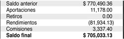 propósito de las pérdidas que están sufriendo millones de trabajadores en sus ahorros para el retiro, Jorge Alcalde, del Distrito Federal, me dice lo siguiente: ‘‘¿Qué se puede hacer contra los ‘ladrones’ de las afores? Te pongo el ejemplo de mi estado de cuenta (último trimestre) que me acaba de llegar.
