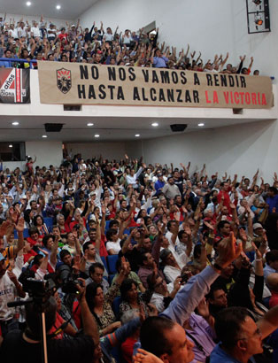Para recordar que el 11 de octubre de 2009 quedaron desempleados 44 mil trabajadores del SME debido a la extinción de Luz y Fuerza del Centro, el gremio efectuó una asamblea general ordinaria, un mitin y tomas simbólicas de oficinas. El dirigente Martín Esparza señaló que el cierre de ese organismo lo paga el pueblo, debido al incremento de las tarifas y el empeoramiento del servicio Foto Yazmín Ortega Cortés