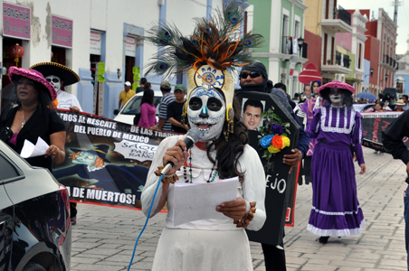 Disfrazados y con ataúdes en los que transportaban los cadáveres del sindicalismo, cientos de profesores efectuaron una marcha fúnebre en la capital de Campeche, en protesta por la reforma educativa y sus leyes secundarias, cuya abrogación exigieron. En Oaxaca, profesores de la sección 22 del SNTE realizaron bloqueos viales Foto Lorenzo Chim