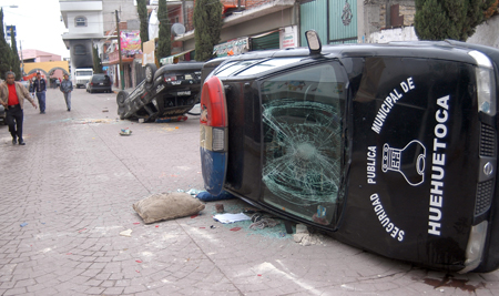 Pobladores destrozaron dos patrullas e incendiaron las ofi cinas de la alcaldía mexiquense tras señalar que policías municipales asesinaron a un adolescente de 14 años y causaron lesiones a una persona. Autoridades locales aseguraron que la muerte ocurrió porque un agente accionó su arma por accidente. El presunto responsable huyó. En tanto, en Zapopan, Jalisco, un uniformado mató a un joven al que primero golpeó con una pistola Foto Mario Antonio Núñez