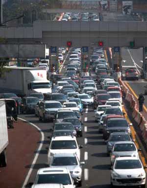 El regreso de paseantes a la ciudad de México, tras el puente por el 103 aniversario de la Revolución Mexicana, ocasionó largas filas en las casetas de peaje de las autopistas que convergen en la capital, principalmente la México-Acapulco (imagen). El problema se agudizó en esa vía por las obras de rencarpetamiento en varios tramos, lo que ocasionó una congestión vehicular de varios kilómetros Foto Alfredo Domínguez