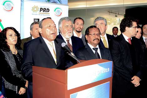 Jesús Zambrano, presidente nacional del PRD, hace el anuncio de la salida de esa organización del Pacto por México,