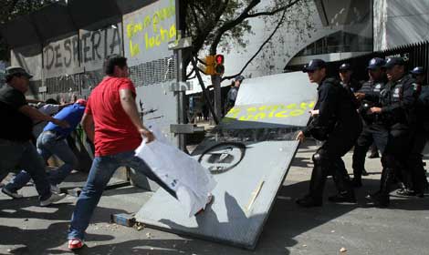 Integrantes de la CNTE derribaron algunas de la vallas colocadas sobre Paseo de la Reforma, esquina con París, para intentar ingresar al recinto legislativo donde se discutía la reforma energética. Hubo empujones con agentes federales, quienes impidieron el paso de los docentes. Ayer, el Movimiento de Regeneración Nacional (Morena) realizó el segundo día de cerco. En la movilización se llamó a estar alertas ante el riesgo de un albazo con la enmienda. En tanto, de acuerdo con reportes médicos, Andrés Manuel López Obrador evoluciona favorablemente en la unidad de terapia intermedia del hospital Médica Sur, tras sufrir un infarto el martes. Ya inició actividad física leve y la toleró, se informó Foto Roberto García