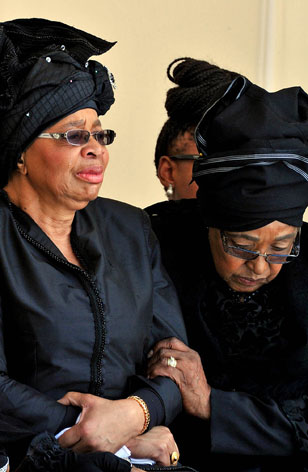 Graca Machel y Winnie Madikizela-Mandela, viuda y ex esposa de Nelson Mandela, participaron en el sepelio del primer presidente negro de Sudáfrica Foto Ap