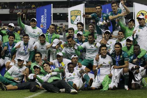 León, el equipo sensación en el torneo, celebró en el centro de la cancha del estadio Azteca su campeonato Foto Víctor Camacho